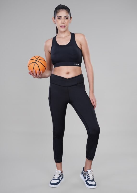 Active Bra Set for Women | Racerback Sports Bra with Tummy Tucker Leggings & Side Pockets