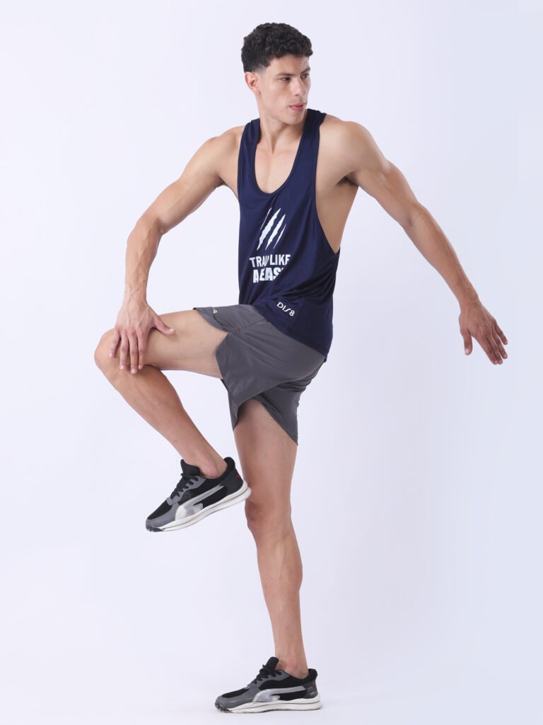 Trademark Shorts – Men’s NS Dry-Fit Branded Gym Shorts | Dis8 Side Logo & Nylon Lining (Blue)