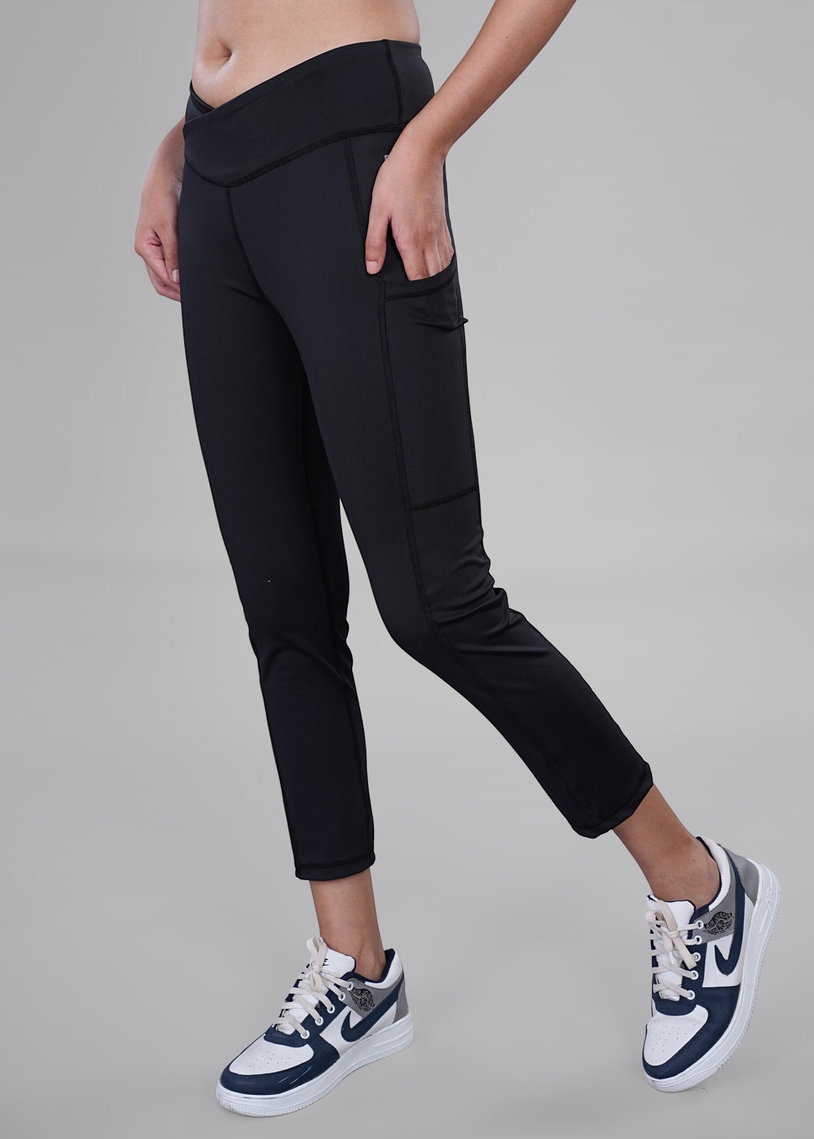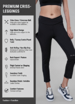Shop Cross Belt Gym Tights – stylish high-waisted women’s workout leggings without pockets. Featuring a flattering cross-belt waistband, tummy control fit, 4-way stretch Lycra & squat-proof comfort for gym, yoga & fitness wear.
