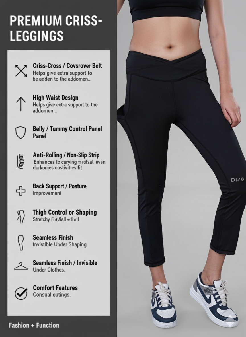 - Tummy Control Compression Fit – Smooths and supports your core during intense workouts.