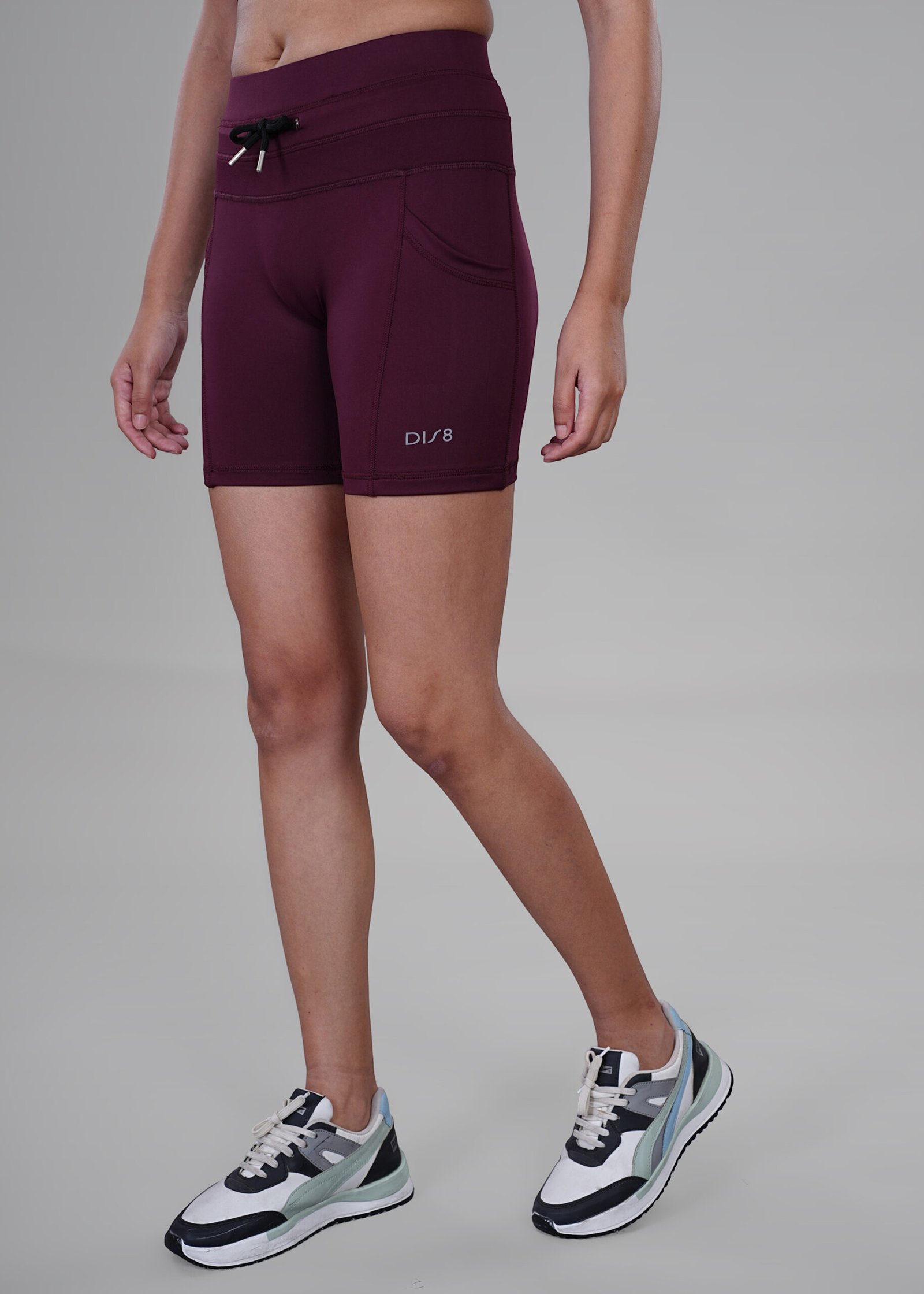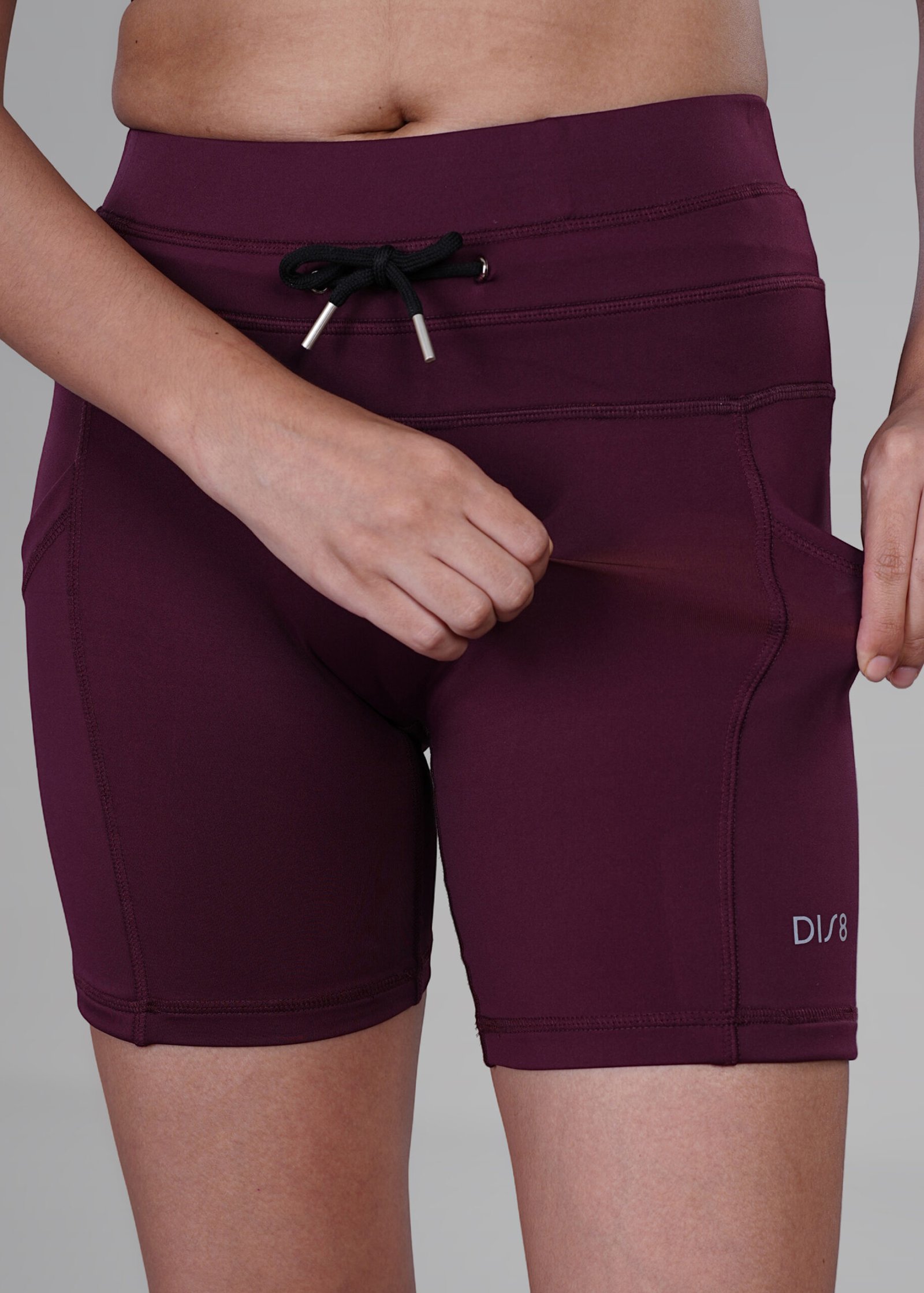 Shop Drawstring Shorts – women’s high-waist gym shorts with adjustable drawstring waistband and both-side pockets. Made with 4-way stretch Lycra, tummy control fit, and moisture-wicking comfort for running, yoga, and workouts.