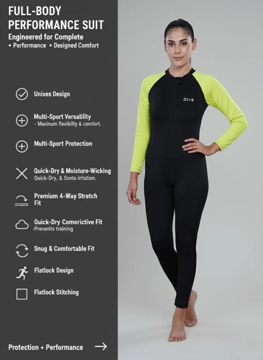 Full Suit Swim & Skating Jumpsuit – Unisex Full-Sleeve, Full-Length High-Stretch Costume for Multi-Sport