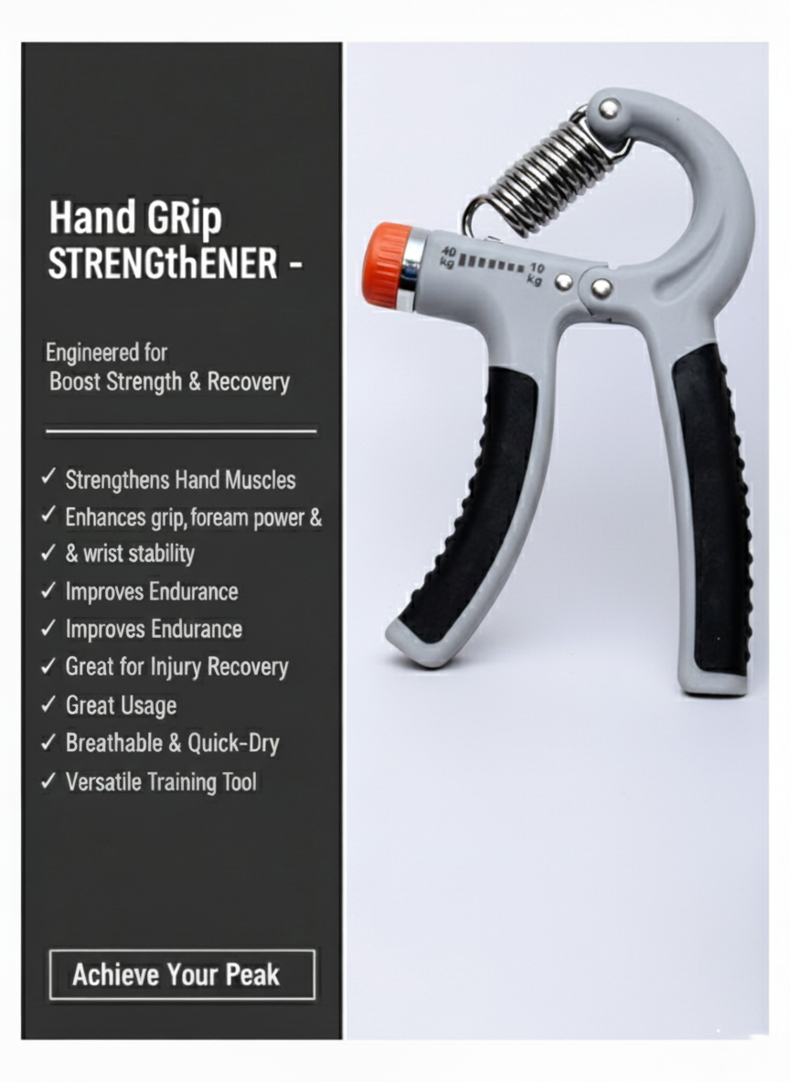 Enhance your grip strength, wrist stability, and forearm endurance with our premium Hand Power Grip, a must-have tool for strength training, hand rehabilitation, and overall fitness. Ideal for athletes, fitness enthusiasts, rock climbers, weightlifters, and musicians, this compact device is designed to improve hand strength, finger dexterity, and muscle endurance effectively.