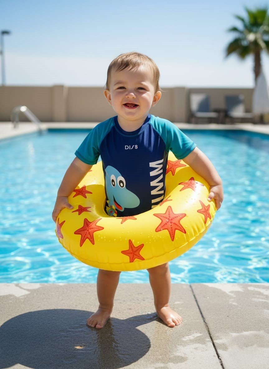 With UPF 50+ sun protection, your child’s skin stays safe from harmful UV rays during outdoor swimming and beach activities. The chlorine-resistant, quick-dry fabric ensures durability, color vibrancy, and long-lasting comfort. Flatlock seams provide a smooth, irritation-free experience, even during hours of fun.