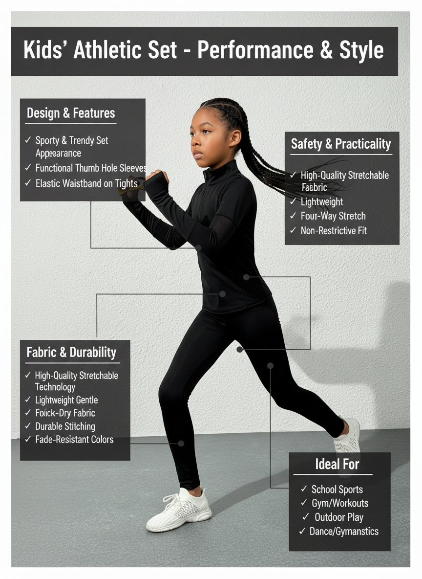 - Vibrant, kid-friendly colors and prints: Makes activewear fun and attractive.