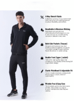 Elevate your workout style with the Men Active Tracksuit, made from high-performance 4-way stretch fabric for ultimate flexibility and comfort. This men’s stretchable tracksuit features a jacket and trouser with both-side pockets, providing convenience without compromising on style. Designed for gym, running, training, and everyday wear, this quick-dry, breathable tracksuit keeps you cool, confident, and ready for action — all day long.