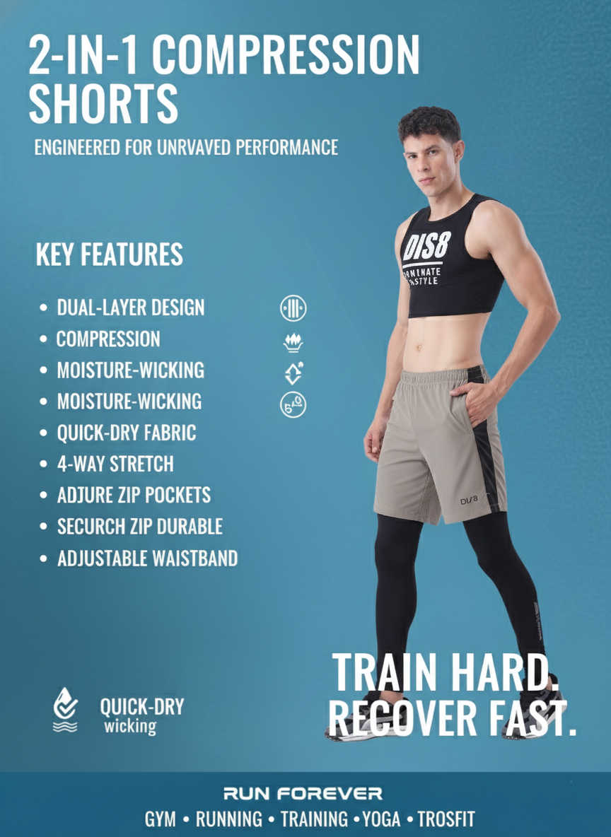 Maximize performance with the Men’s 2-in-1 Full-Length Compression Shorts. Featuring sweat-wicking fabric and targeted muscle support, these Dual Layer Gym Tights are perfect for running, lifting, and practice. Zero chafing, secure phone pockets.