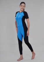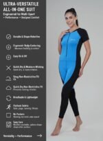 Made from premium quick-dry, moisture-wicking fabric, the jumpsuit keeps you cool, dry, and comfortable during both land-based workouts and aquatic activities. The half-sleeve, full-length design offers coverage, protection, and flexibility, while the ergonomic, second-skin fit ensures freedom of movement for every sport or activity.