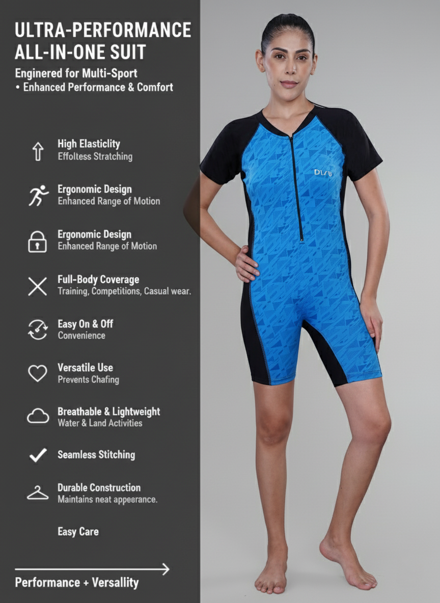 Experience versatility, comfort, and performance with the MULTI SWIM / SKATING COSTUME, the ultimate unisex jumpsuit designed for multi-sport use. Perfect for swimming, yoga, cycling, gymnastics, skating, and other active pursuits, this jumpsuit delivers maximum stretch, support, and freedom of movement for athletes of all levels.