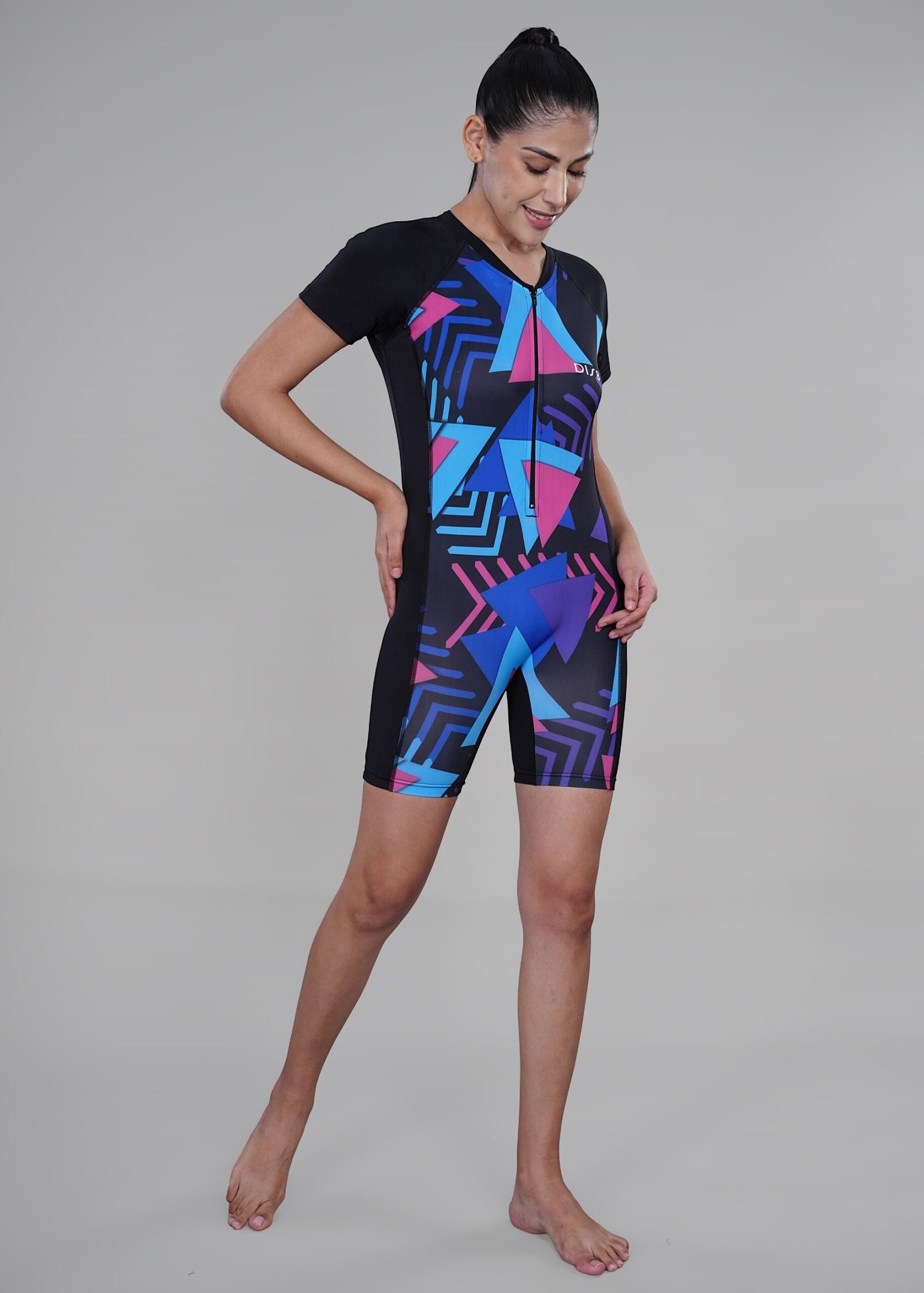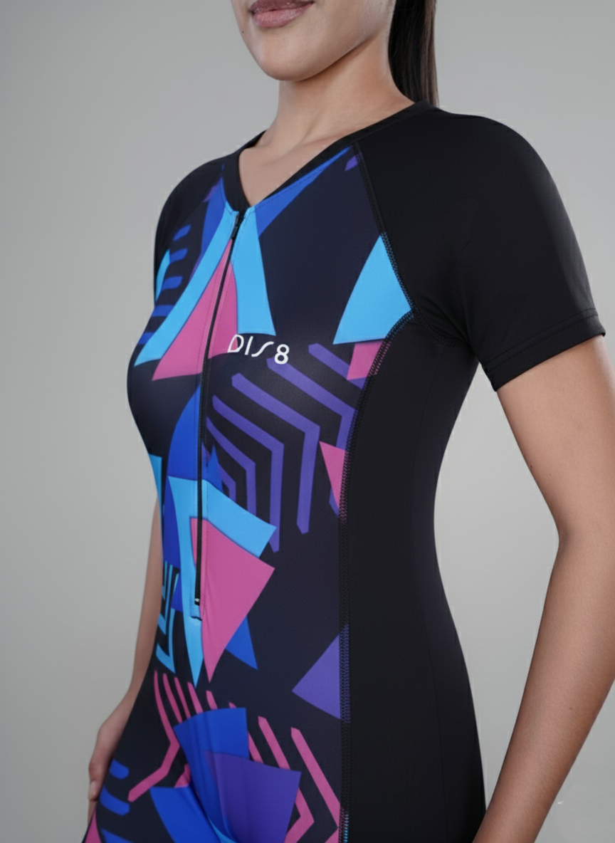 Stand out in style while performing at your best with the MULTI SWIM / SKATING COSTUME — a versatile, printed unisex jumpsuit designed for multi-sport use. Perfect for swimming, yoga, cycling, gymnastics, skating, and other active pursuits, this jumpsuit combines fashion-forward prints with high-performance functionality.