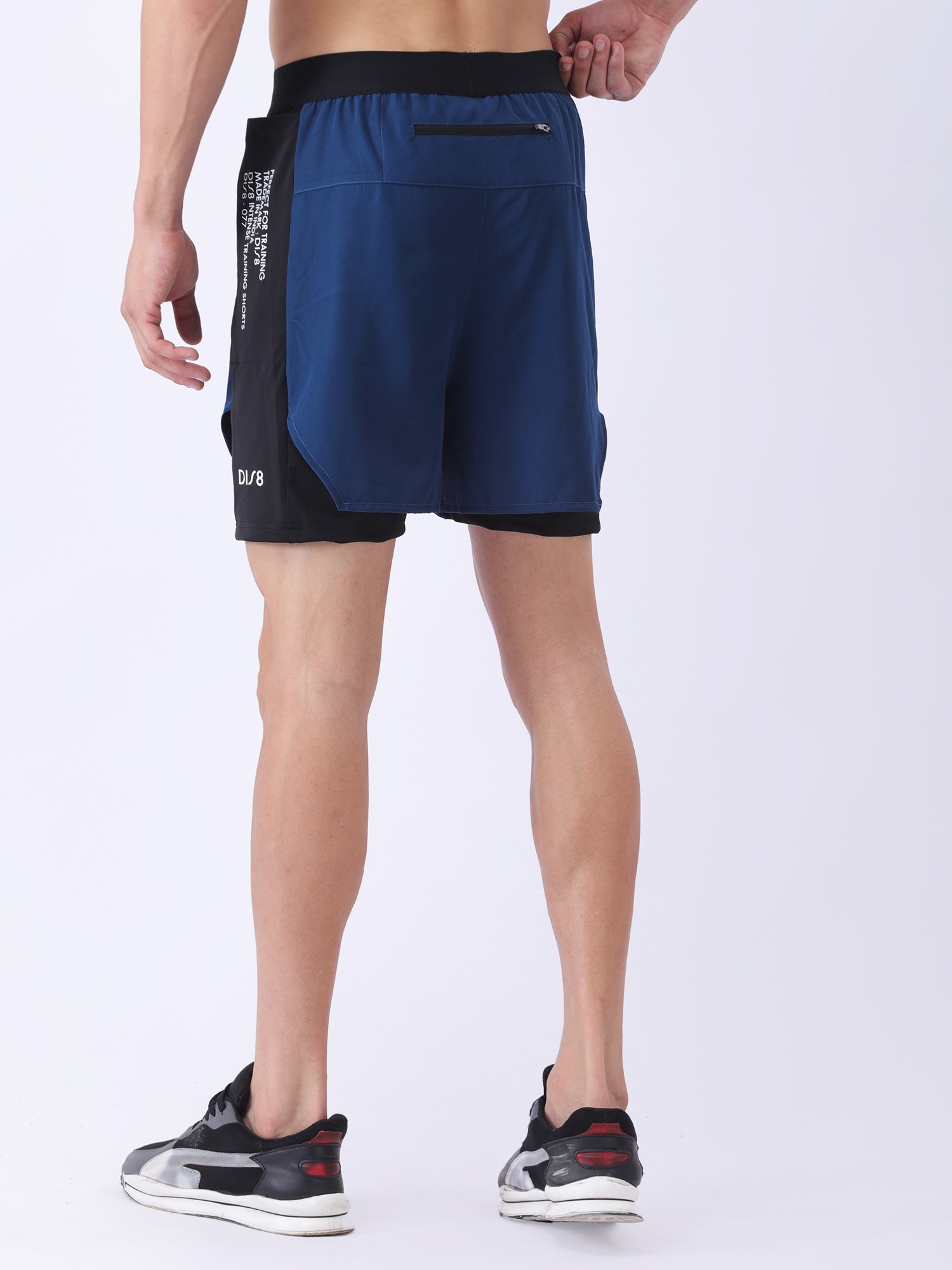 Shop the Trademark Shorts for Men, made from NS Dry-Fit fabric with Dis8 side branding, open pockets, and nylon stretch lining. Lightweight, breathable, and stylish — perfect for gym, running, and training.