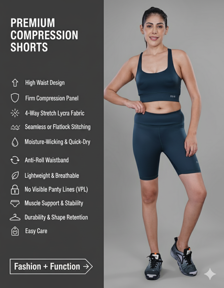 Shop Tummy Tucker Shorts – women’s high-waist gym shorts and tummy control fit. Made with 4-way stretch Lycra, squat-proof fabric, and moisture-wicking technology for yoga, training & running.