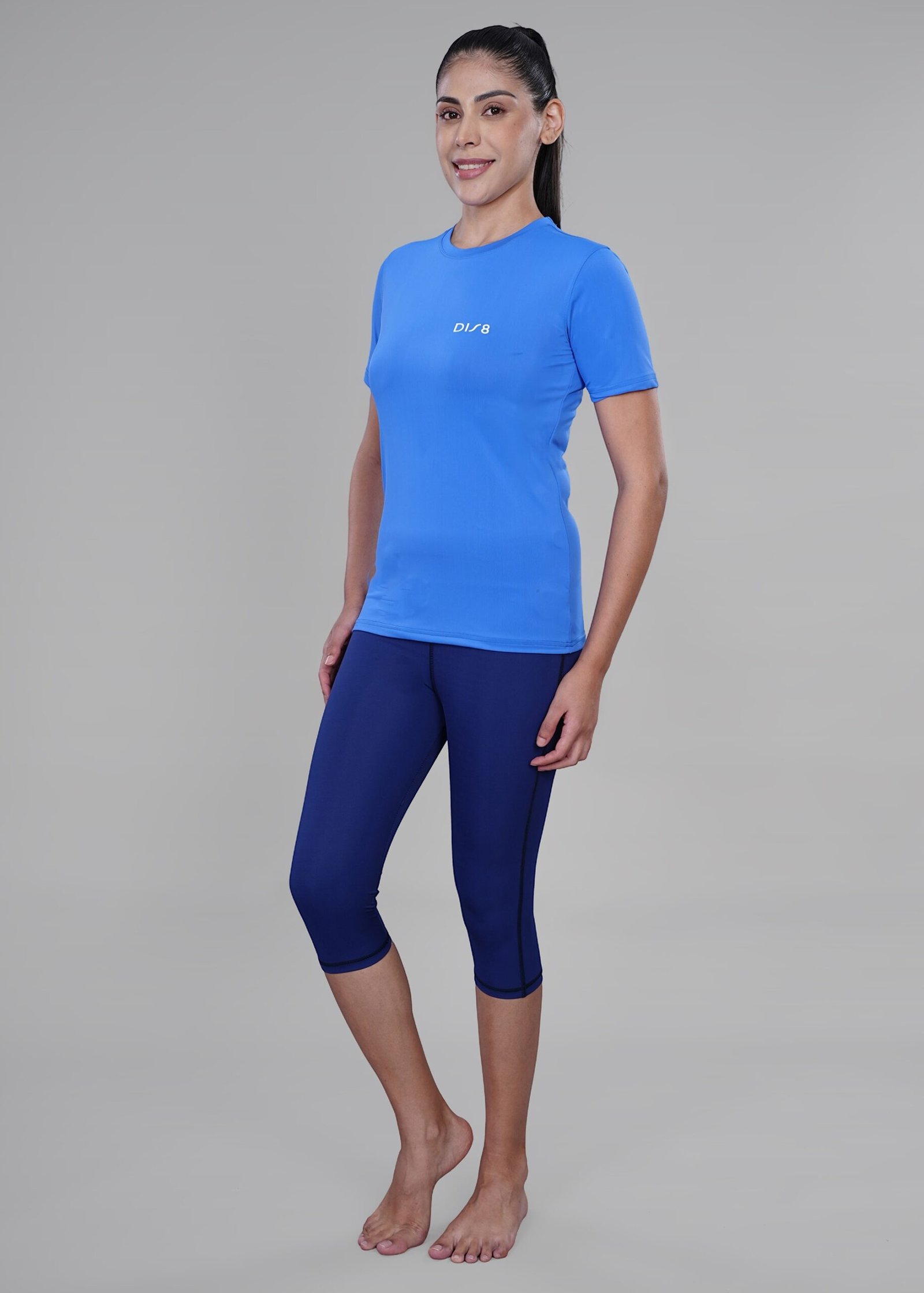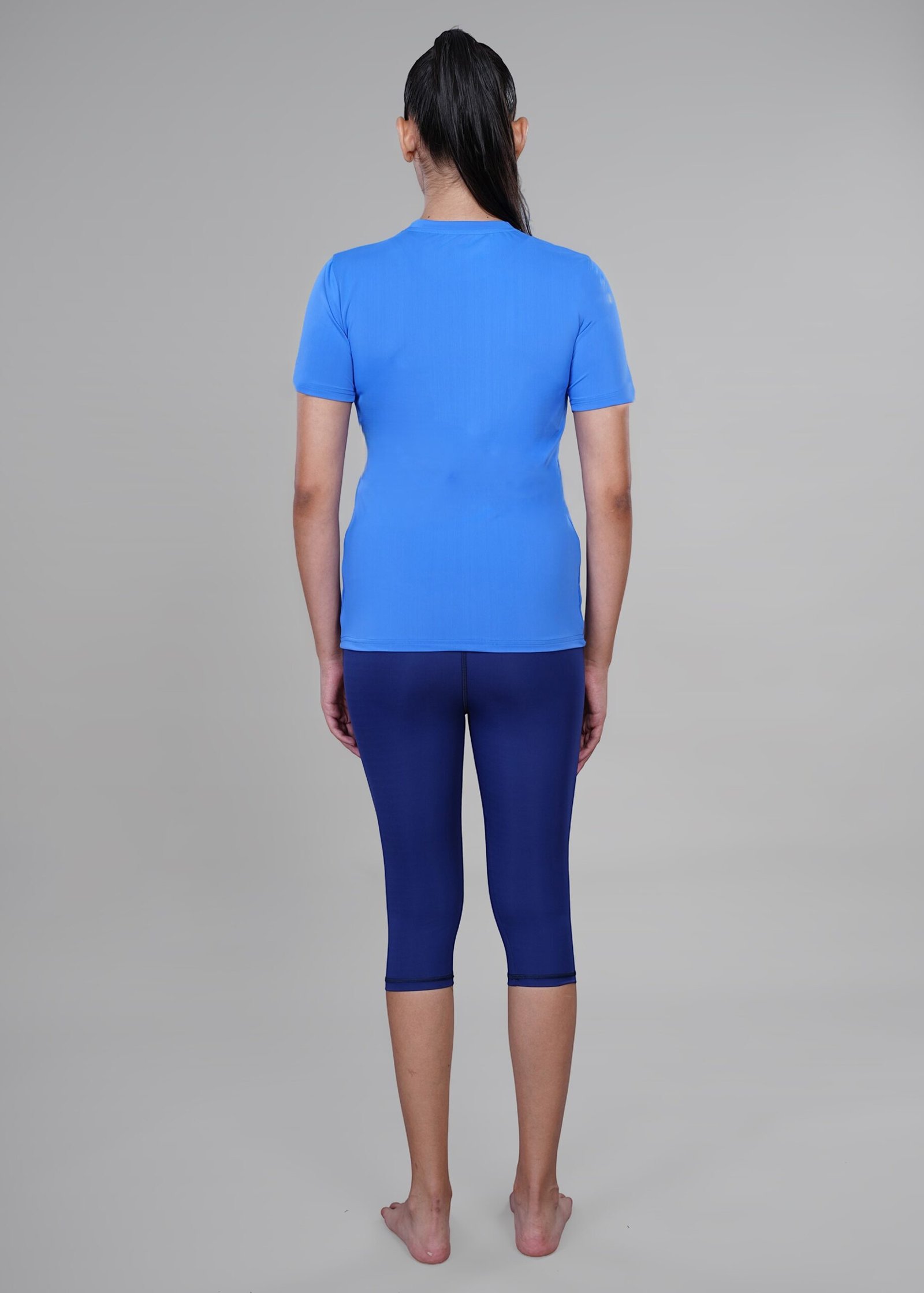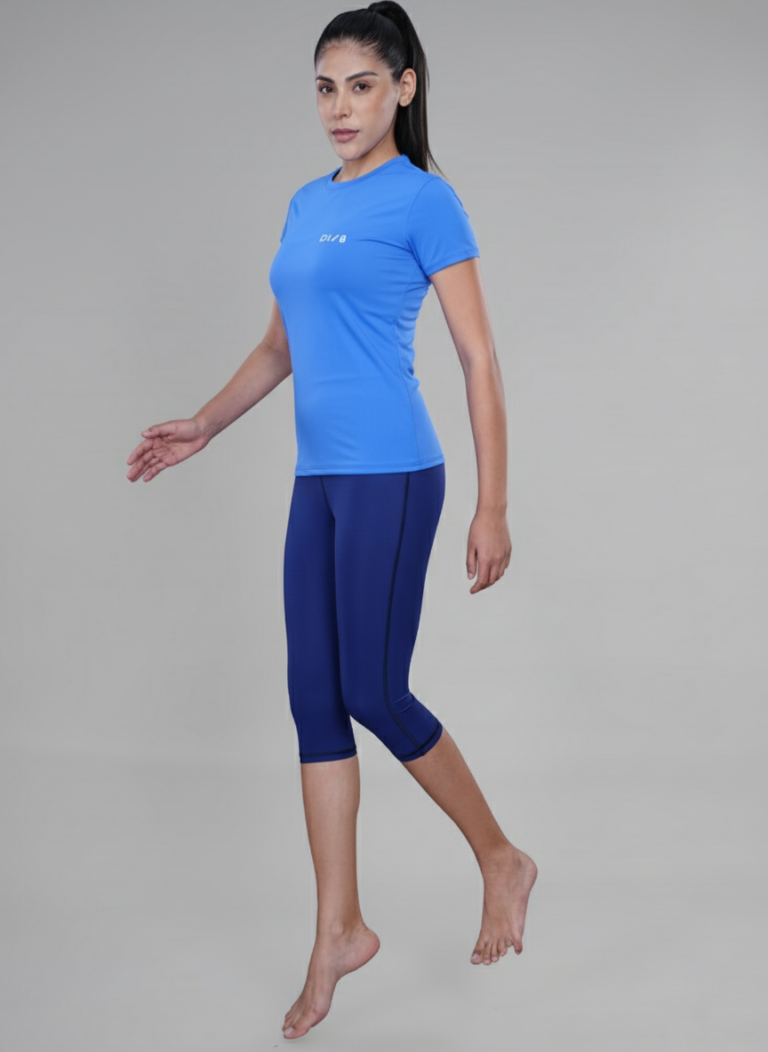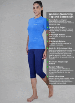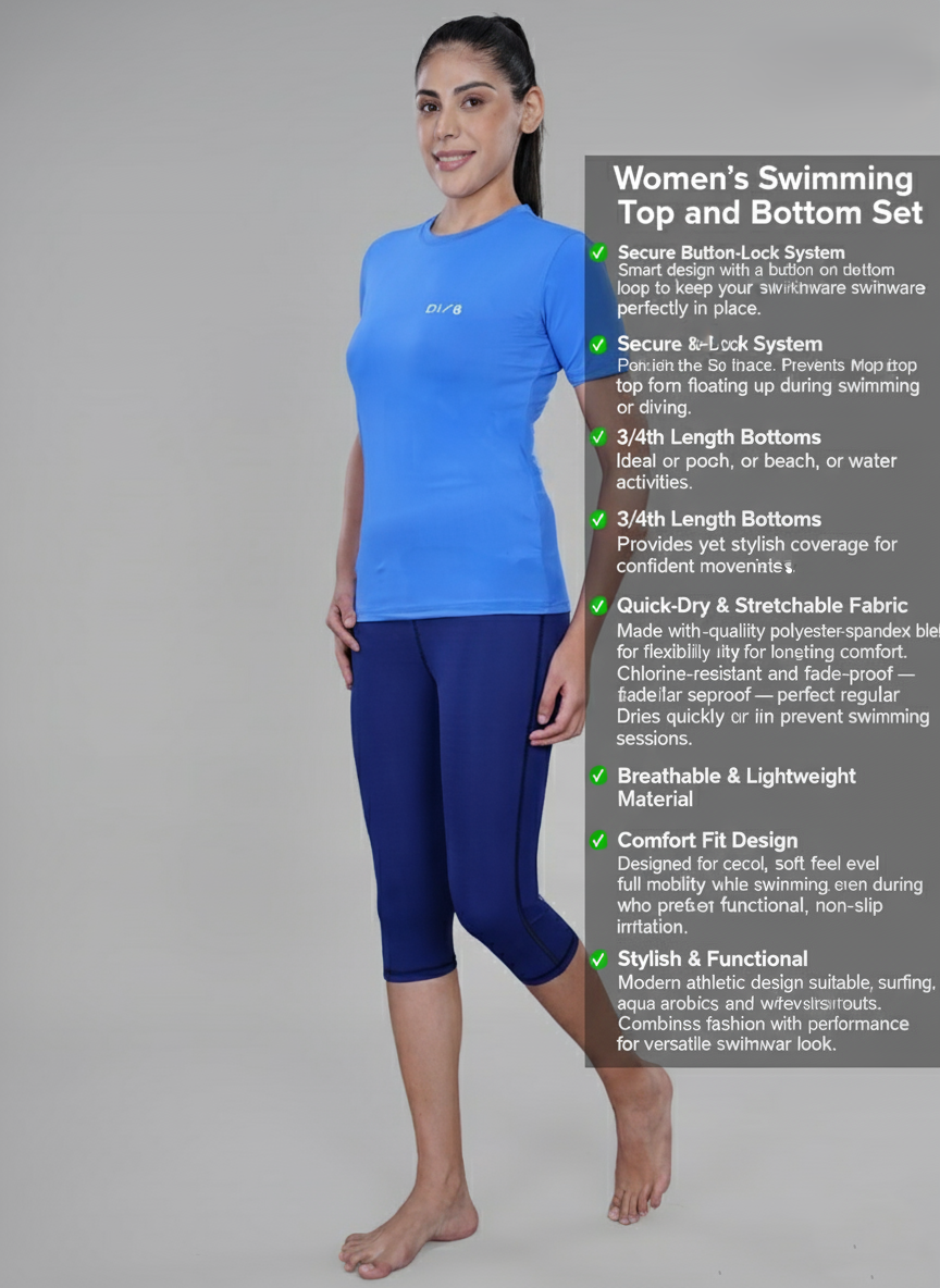 Shop Women’s 3/4th Length Swimming Top & Bottom Set with secure button lock. Quick-dry, stretchable & non-slip design for comfort and confidence.